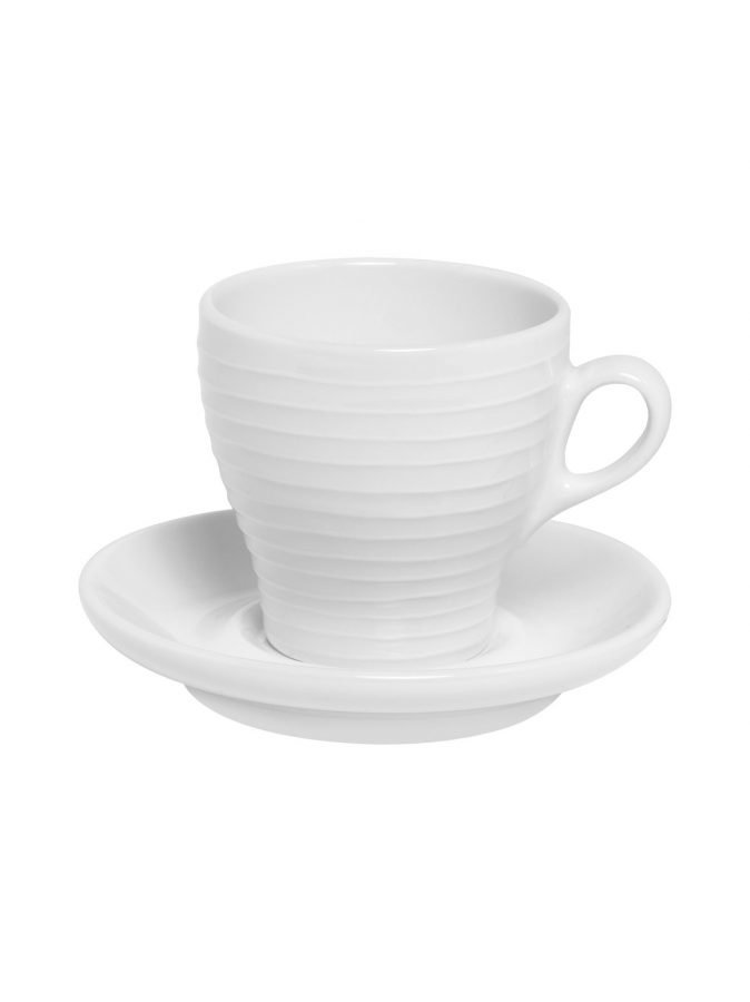 Kohokuvioidussa cappucinokuppiparissa on viehättävää tekstuuria ja leikkisyyttä. Blond-sarjan astiat ovat Relief Group -suunnittelijaryhmän käsialaa. Materiaali on konepesun- sekä mikroaaltouuninkestävää luuposliinia.