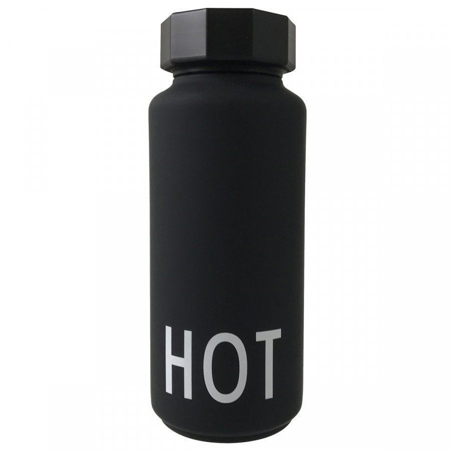 Design Lettersin HOT-termospulloa koristavat Tobias Jacobsenin suunnittelemat kirjasimet sekä hauskan kulmikkaasti muotoiltu korkki. Termospullo on suunniteltu pitämään kuumat juomat lämpiminä 12 tunnin ajan ja kylmät juomat viileinä 24 tunnin ajan, ja se on tyylikäs ja hyödyllinen varuste niin toimistoon, retkelle kuin työmatkallekin.