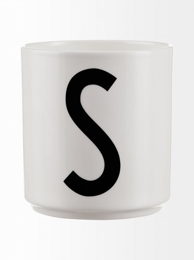 Yksinkertaisen tyylikkään kirjainmukin on suunnitellut Arne Jacobsen. Korvaton muki soveltuu juomien lisäksi piensäilytykseen. Valmistaja on Design Letters. Materiaali on posliinia. Halkaisija on 7,5 cm, korkeus on 8,5 cm.