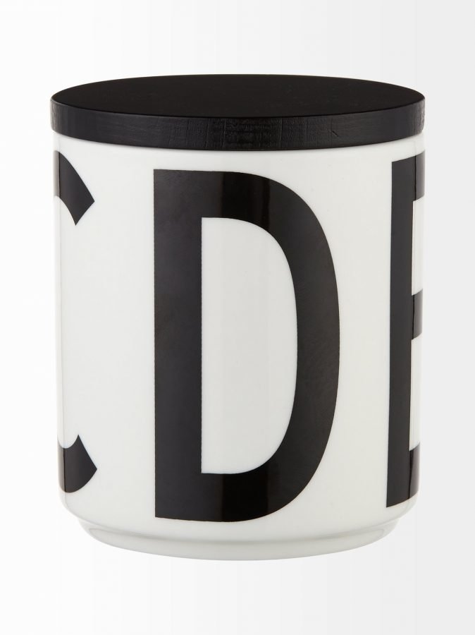 Kannellista säilytyspurkkia koristavat Arne Jacobsenin suunnittelemat typografiset kirjaimet (A-E). Posliinisen purkin kansi on puuta. Halkaisija on 8 cm, korkeus on 9,5 cm. Valmistaja on Design Letters.