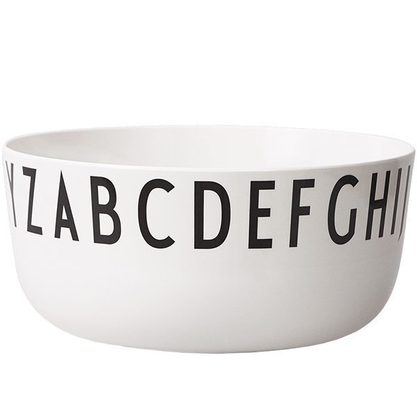 Design Lettersin tarjoilukulhoa kiertää Arne Jacobsenin ajaton kirjasintyyppi, jonka hän suunnitteli Aarhusin kaupungintalolle vuonna 1937. Kevyt ja kestävä melamiinikulho soveltuu paitsi ruoan tarjoiluun, myös leivontaan ja ruoanlaittoon. Kulhon tilavuus on 4 litraa.