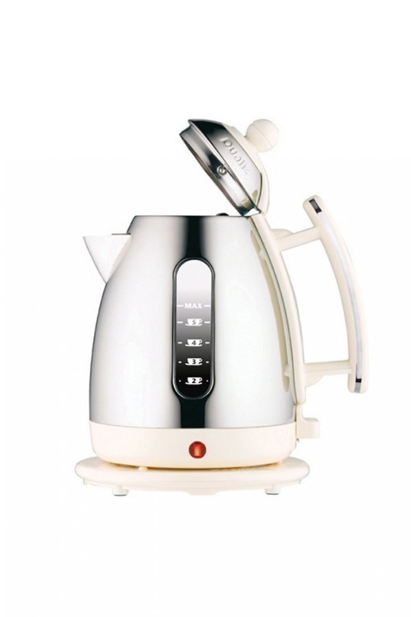Dualit-vedenkeitin ruostumatonta terästä, kahva ja kannen nuppi kuumankestävää materiaalia. Johdoton. Pohjalevyn ansiosta kannun voi asettaa miten vain. Vedenkeitin on nopea, hiljainen ja helppo puhdistaa piilolämpöelementin ansiosta. Valittiin maailman parhaaksi vedenkeittimeksi Smartsonin vedenkeitinkokeessa. Tilavuus: 1,5 l Kapasiteetti/tunti: 22 l Teho: 2,4 kW Mitat: 25 x 18 x 22 cm Paino: 1,36 kg