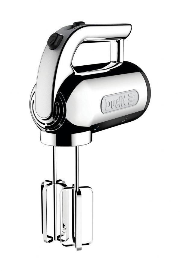 Dualit-sähkövatkain, jossa kiiltävä, krominvärinen pinta. Uusi design. Kätevä kelautuva johto on piilossa katseilta, kun vatkainta ei käytetä. Vahva ja hiljainen moottori. Mukana toimitettavat tarvikkeet: Pallovatkain 2 vatkainta 2 taikinakoukkua 400 W
