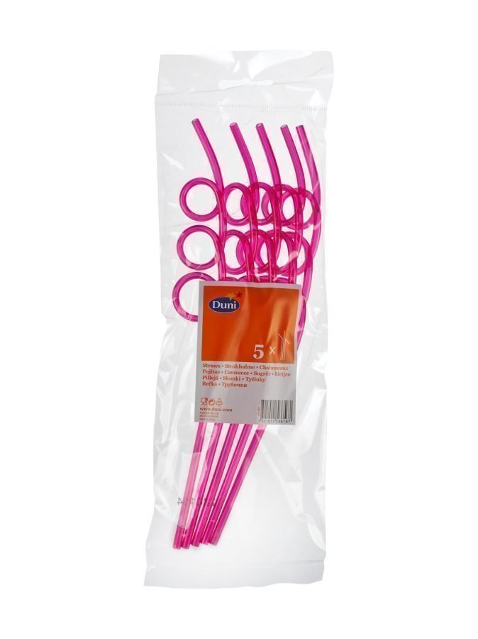 Pakkauksessa on viisi raikkaan pinkkiä kiekurapilliä.