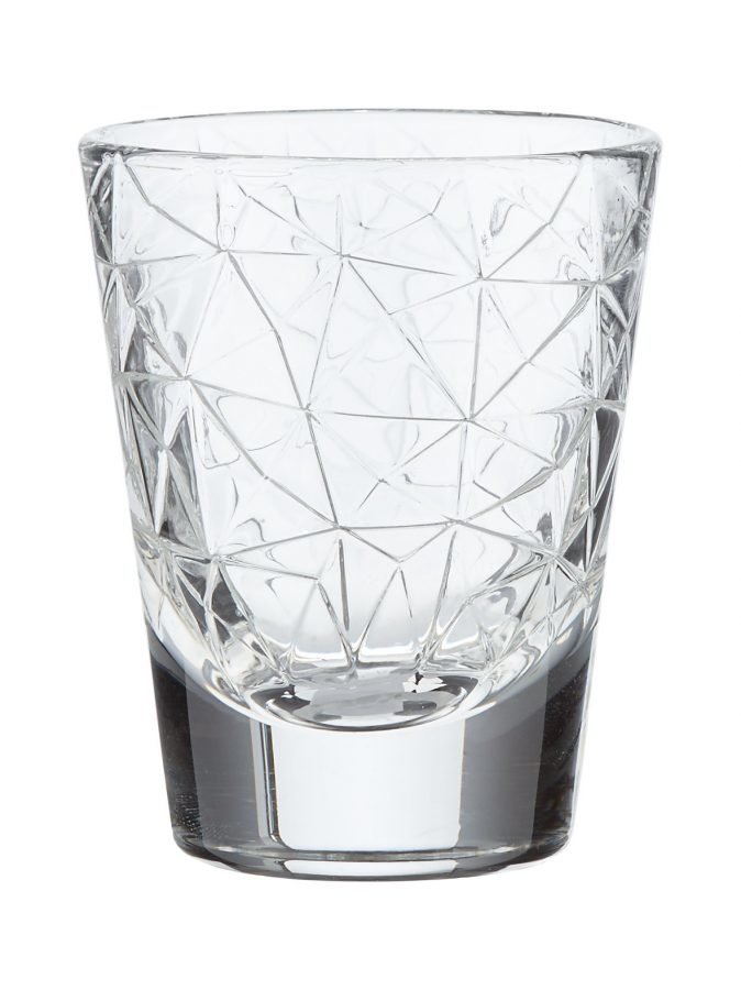 Tukevassa shottilasissa on geometrisia kuvioita, joiden läpi valo hajoaa kauniisti. Lasin voi pestä koneessa.