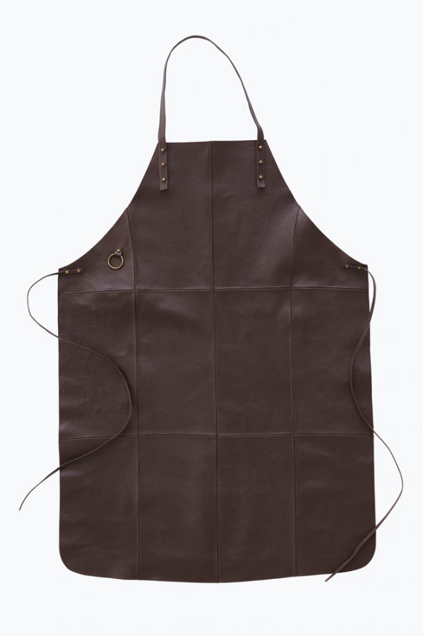 Esiliina pehmeää nahkakuiduista puristettua nahkaa, jossa suojaava pinta. Pitkät solmimisnauhat ja säädettävä niskanauha. Metalliset lenkit, joihin voi ripustaa vaikkapa keittiöpyyhkeen tai grillipihdit. 100% kuitunahkaa Puhdistus kostealla liinalla pyyhkimällä