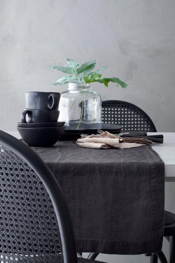 Kaitaliina pestyä pellavaa. Koko 40×150 cm. Silitä sileäksi tai rumpukuivaa matalassa lämpötilassa ja ripusta kuivumaan hieman kosteana, niin pellava säilyttää luonnollisen, hieman ryppyisen ja elävän pintansa.