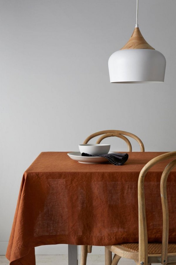 Pöytäliina pestyä pellavaa. Kolme kokoa: 137×180 cm, 137×250 cm ja 137×300 cm. Silitä sileäksi tai rumpukuivaa matalassa lämpötilassa ja ripusta kuivumaan hieman kosteana, niin pellava säilyttää luonnollisen, hieman ryppyisen ja elävän pintansa.