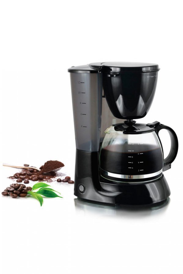 Emerio-kahvinkeitin, jossa automaattinen virrankatkaisu. Vetoisuus 1,25 l (n. 8–10 kupillista). – Teho: 750 W – Vetoisuus 1,25 l, 8–10 kupillista – Tippalukko – Merkkivalo – Automaattinen virrankatkaisu – Lämpölevy – Irrotettava suodatinteline – Mitta-asteikko pannussa ja vesisäiliössä