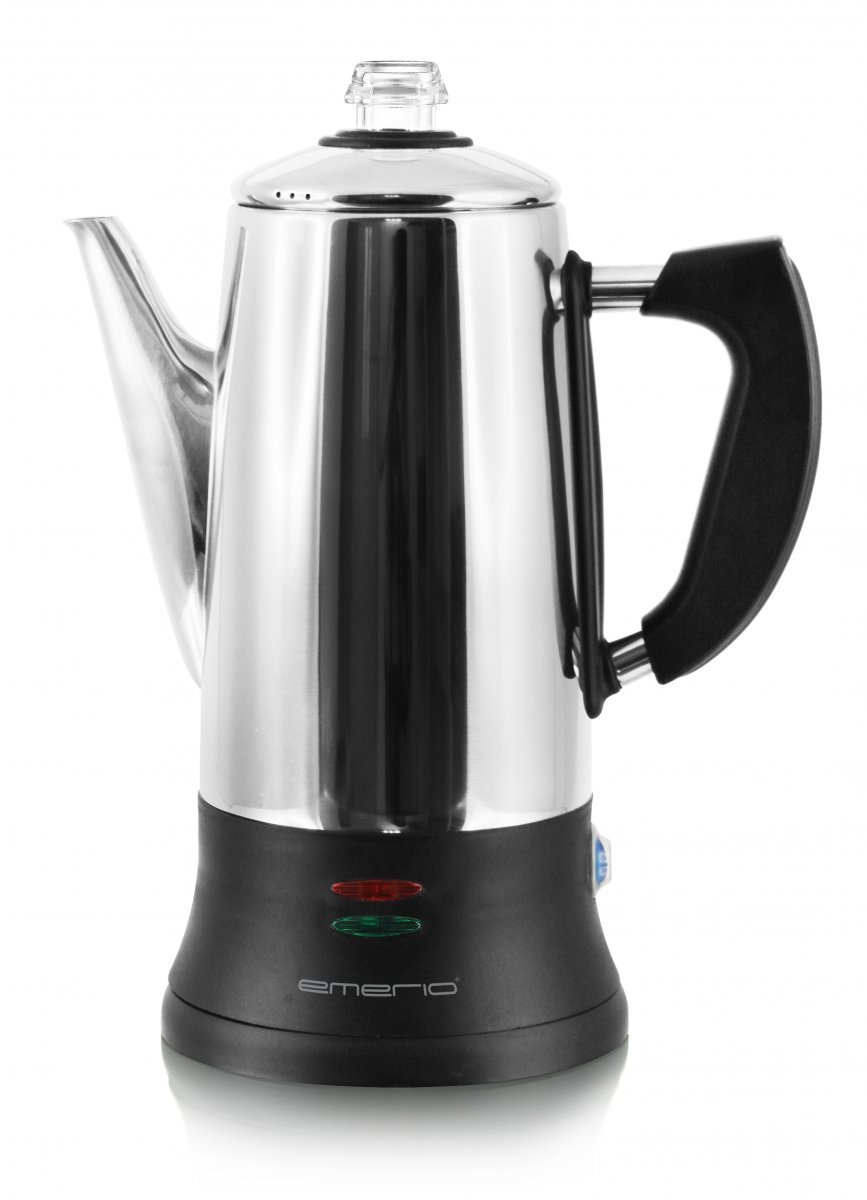 Emerion tyylikäs perkolaattori, jolla keittää jopa 12 kuppia kahvia kerralla. Tällä modernilla klassikolla keittää kupin aromikasta ja vahvaa kahvia. Vesi kiertää kahvin läpi muutaman kerran, jonka ansiosta kahvi saa intensiivisen maun. . Perkolaattorikeitin siirtyy automaattisesti lämpimänäpitotilaan kun kahvi on keittynyt, pitäen kahvin lämpimänä pidemmän aikaa. 40 minuutin lämpimänäpidon jälkeen keitin sammuu automaattisesti. Keitin istuu tukevasti alustalla. Pyörii 360 astetta. Piilotettu lämpöelementti. Irrotettava suodatin joka kestää konepesun.