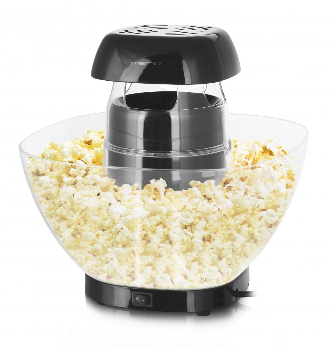 Emerio -tuotemerkin popcorn-koneella voit helposti ja ilman öljyä tai voita tehdä omat popcornit. Popcornit valmistuvat suoraan tarjoilukulhoon ja se kestää vain 3-5 minuuttia. Poppaa, suolaa ja tarjoile!. Kapasiteetti 80 gram. Teho 1200W. Sisältää mittakupin. Helppo puhdistaa. Kumitassut. Indikaattorilamppu. Päällä/pois -kytkin.
