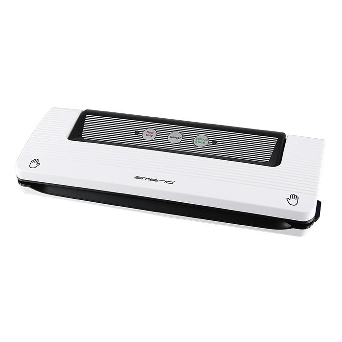 Emerion vakuumipakkaimen avulla raaka-aineet saa säilymään tuoreina jopa viisi kertaa tavallista pidempään, samalla suojaten raaka-aineet pakastuksen aiheuttamilta vaurioilta. Vakuumippussissa lihat ja kalat voi myös marinoida muutamassa minuutissa. Teho: 110 W. Vakuumiefekti: -0,8 bar. Merkkivalo. 3 m pitkä pussirulla sisältyy pakkaukseen. Vakuumipussit voi lämmittää mikroaaltouunissa ja kiehuvassa vedessä. Sopii kuiville ja kosteille raaka-aineille.