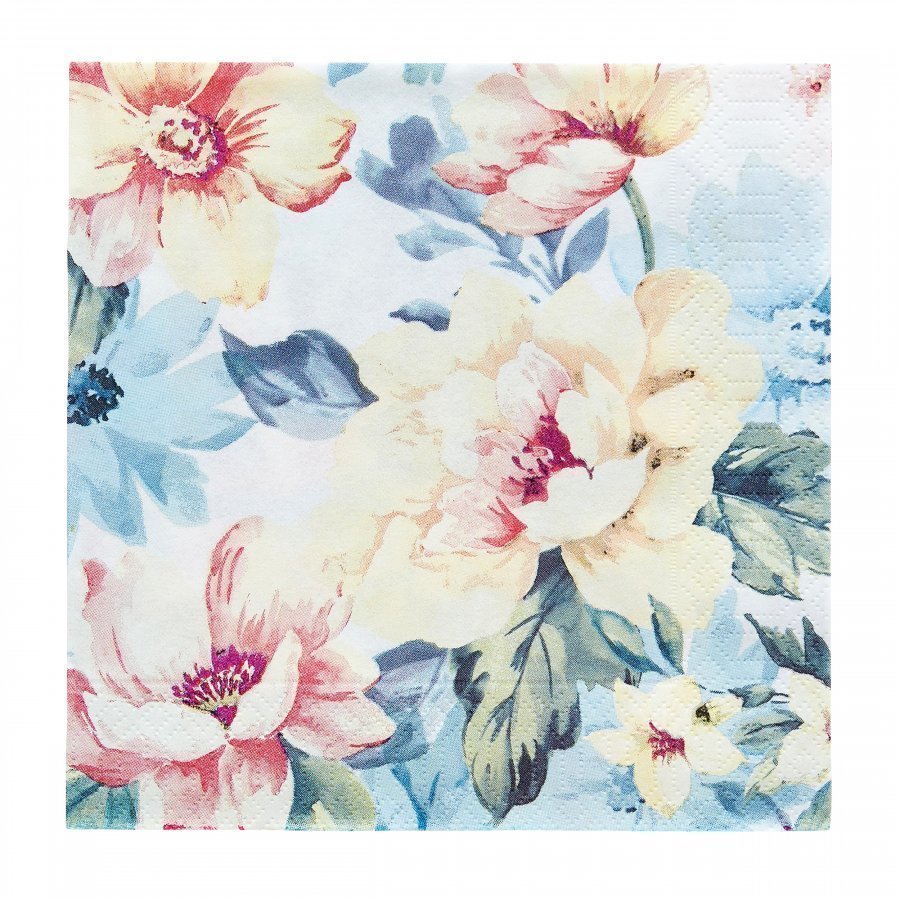 Paperiservetit, joissa painettu kukkakuvio. Viimeistele kattauksesi kauniilla serveteillä. Pakkauksessa 20 servettiä.