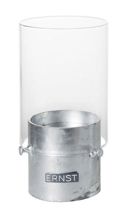 Galvanoitu kynttilälyhty, jossa on lasinen läpikuultava suoja ERNST-tekstillä. Kynttilälyhty sopii pöytäkynttilälle ja sillä saa luotua kauniita sisustuksia sarjan muiden tuotteiden kanssa. Lyhtyjä löytyy monen eri värisenä ja kokoisena.