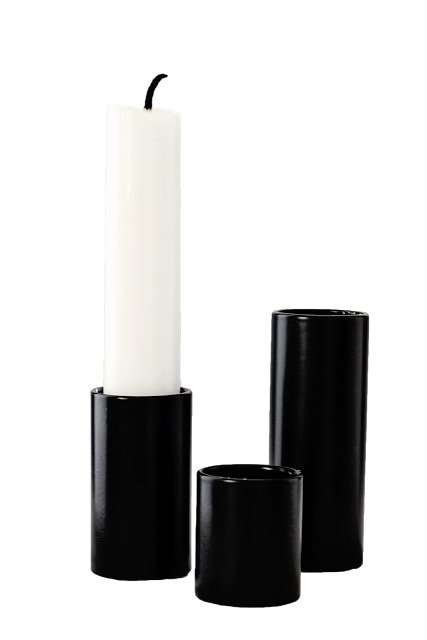 Kolme kappaletta mustia kynttilänjalkoja, joissa on metallinen magneetti pohjassa. Kaikki kolme kynttilänjalkaa ovat eri kokoisia, niiden mitat ovat: 3 cm, 4.5 cm ja 6.5 cm. Kynttilänjalat tuovat modernia tunnelmaa kotiin. Löytyy myös eri värisinä.