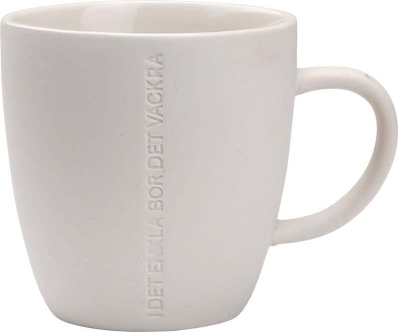 Kivitavarasta valmistettu valkoisen ja saven värinen muki. Muki sopii täydellisesti kahvi- ja teehetkiin. Sarjaan kuuluu myös muita astioita, joilla saa muodostettua kauniita kattauksia.