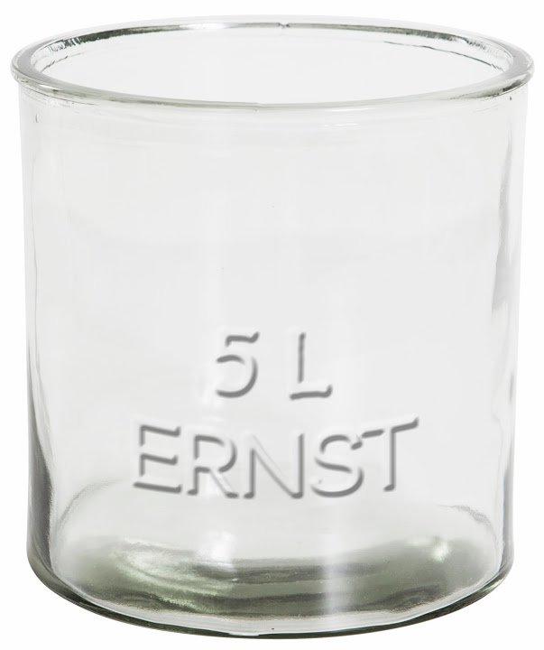 Lasipurkki 5.0 L, lasissa kohoteksti 5.0 L ERNST. Sopii hyvin kukille tai yleissäilytykseen. Useita eri kokoja, kansi erikseen ostettavissa.