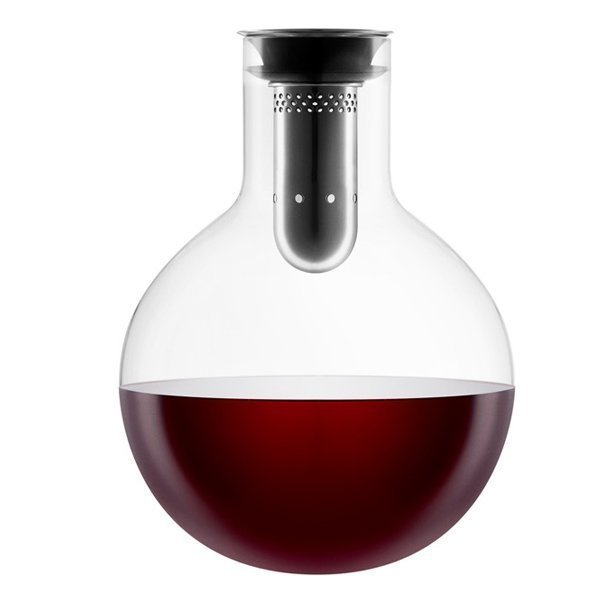 Eva Solon dekantoiva karahvi tuo viinin parhaat puolet esille. Kun kaadat karahviin viiniä, se virtaa integroituun suppiloon pienien aukkojen läpi ja suppilosta karahvin sisäseinämiä pitkin pohjalle. Tämä prosessi hapettaa viinin tehokkaasti.
