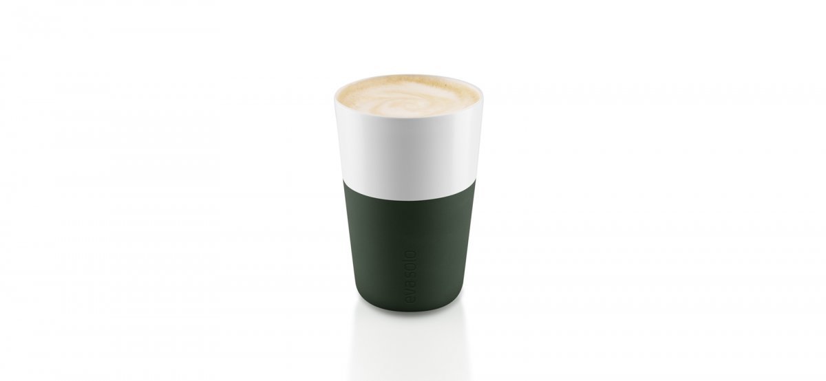 Eva Solon lattemukit metsänvihreällä silikonikuorella ovat 360 ml vetoiset. Tämä vastaa kahvi- sekä maitomäärää, jonka suurimmalla osalla kahvikapseleista saa aikaan standardiasetuksella. Mukit ovat posliiniset ja silikonisen kuoren ansiosta tukevaotteiset. Kuori myös suojaa sormet lämmöltä. Mukit ovat konepesun kestävät – irrota silikonikuori ennen astianpesukoneeseen laittoa.