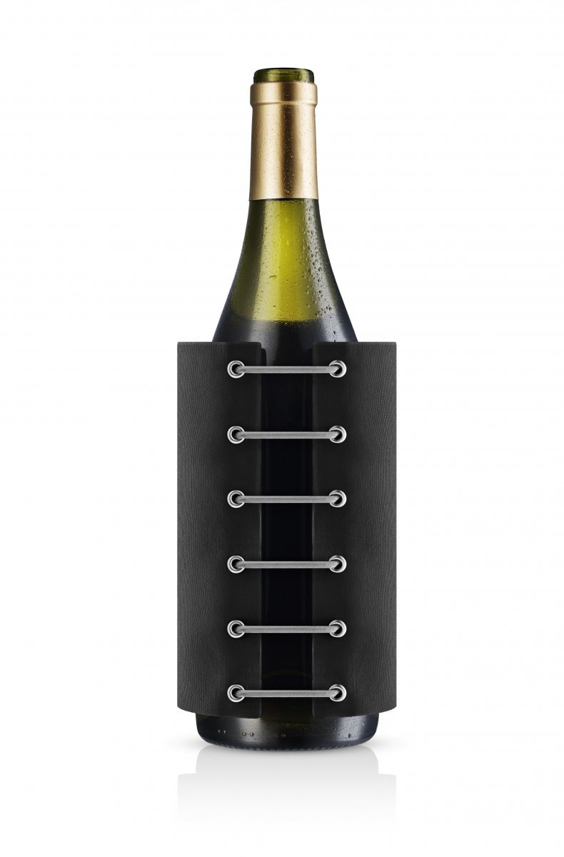 Käytännöllinen musta viininjäähdytin Eva Sololta. Viininjäähdytin pitää viinin ja kuohuviinin kylmänä kaksi tuntia, jonka ansiosta se on täydellinen ottaa mukaan piknikille. Jäähdyttimessä on elastiset narut, joten se toimii monen eri kokoisille pulloille. Viininjäähdytin on valmistettu nylonista, jonka sisällä on jäätyvä geeli.