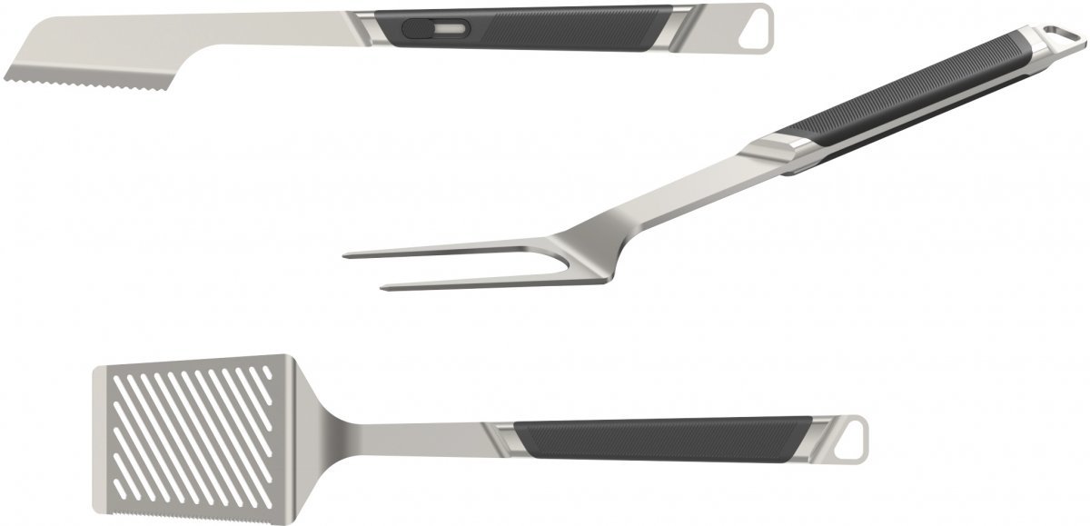 Täydelliset grillityövälineet Everduen hiiligrilli Cuben vierelle. Setti sisältää kolme työvälinettä joilla lihat ja muut grillattavat on helppo käännellä.