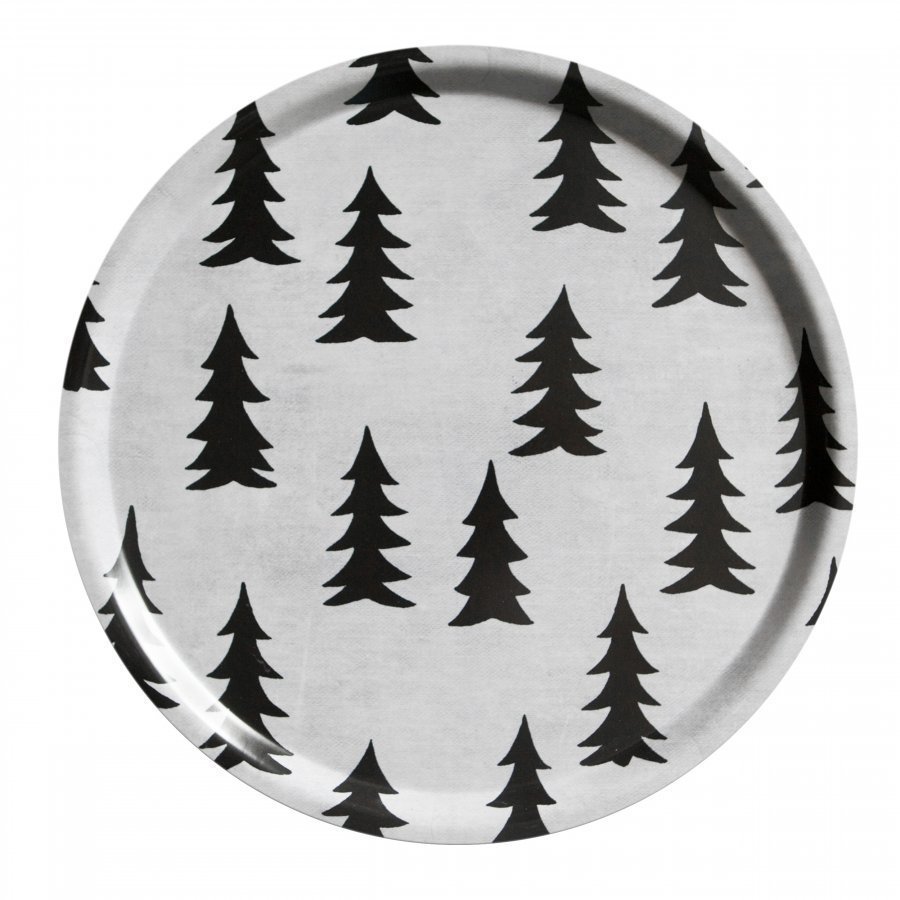 Pyöreä tarjotin Fine Little Day -tuotemerkiltä, jossa on kuusikuvio. Kuosi on saanut inspiraationsa Skandinavian metsistä. Tarjotin on valmistettu muotoonpuristetusta koivuvanerista Ruotsissa.