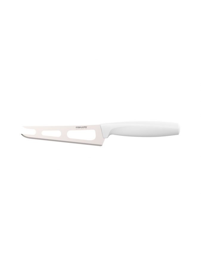 Functional Form -keittiötyövälinesarjan innovatiiviset tuotteet on suunniteltu nykyaikaisen keittiön vaatimuksiin. Kapea juustoveitsi sopii pehmeän ja kovan juuston leikkaamiseen ja tarjoiluun rei’itetyn teränsä ansiosta.Materiaali on muovia ja terästä.1015987