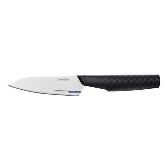 Titanium-vihannesveitsi on monipuolinen veitsi, joka on suunniteltu erityisesti hedelmien ja vihannesten kuorimiseen. Terä on valmistettu titaanista, mikä tekee siitä erittäin kevyen ja helposti kontrolloitavan. Vallankumouksellinen LZR-EDGE ™-tekniikka pitää terän terävänä neljä kertaa pidempään kuin tavallisissa veitsissä. Moderni suunnittelu ja kolmiulotteinen kahva tarjoaa tukevan otteen. Suositellaan käsinpesua.