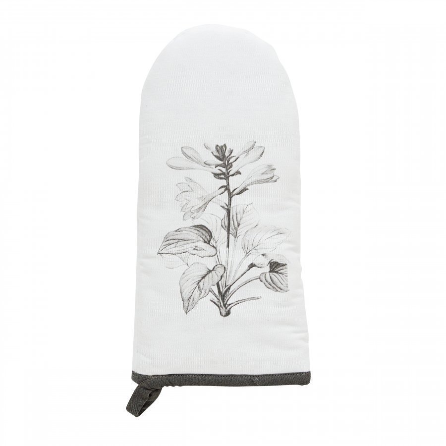 Patakinnas, jossa painettu kukkakuvio. Vanuvuori suojaa käsiä kuumuudelta ruoanlaitossa. Konepesu 40 asteessa.