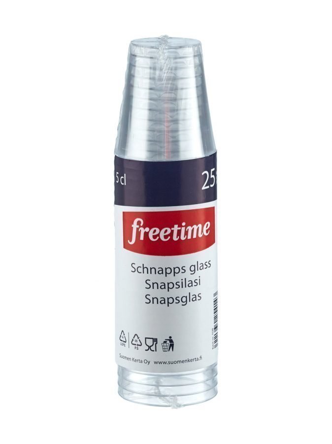 Pakkauksessa on 25 kappaletta muovisia snapsilaseja.