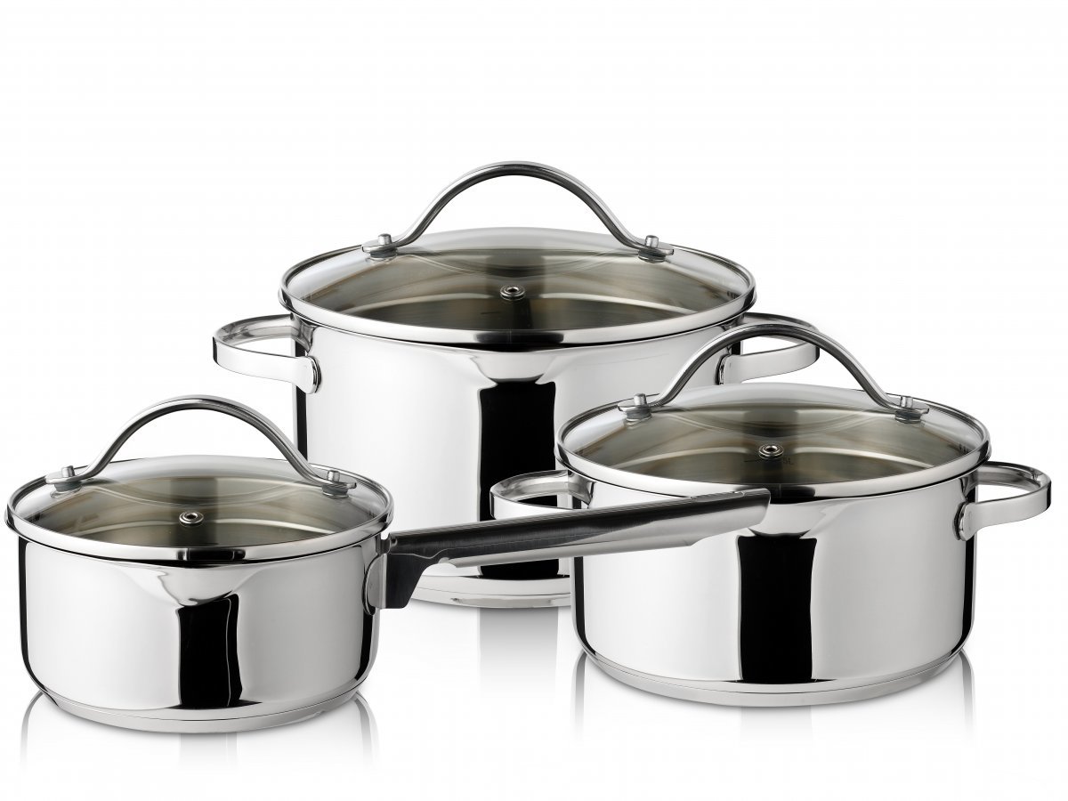 Hintansa veroinen kolmiosainen kattilasetti ruostumattomasta teräksestä 18/8. Kattiloiden sisäpinnalla on mittaskaala ja reunoilla kaatonokka. Kattilat sopivat kaikille keittotasoille, mukaan lukien induktioliesi. . Settiin sisältyy:. Kasari 6 x 7,5 cm (1,25L). Kattila 18 x 9,0 cm (2,0L). Kattila 20 x 11,5 cm (3,0L). Kannet . .
