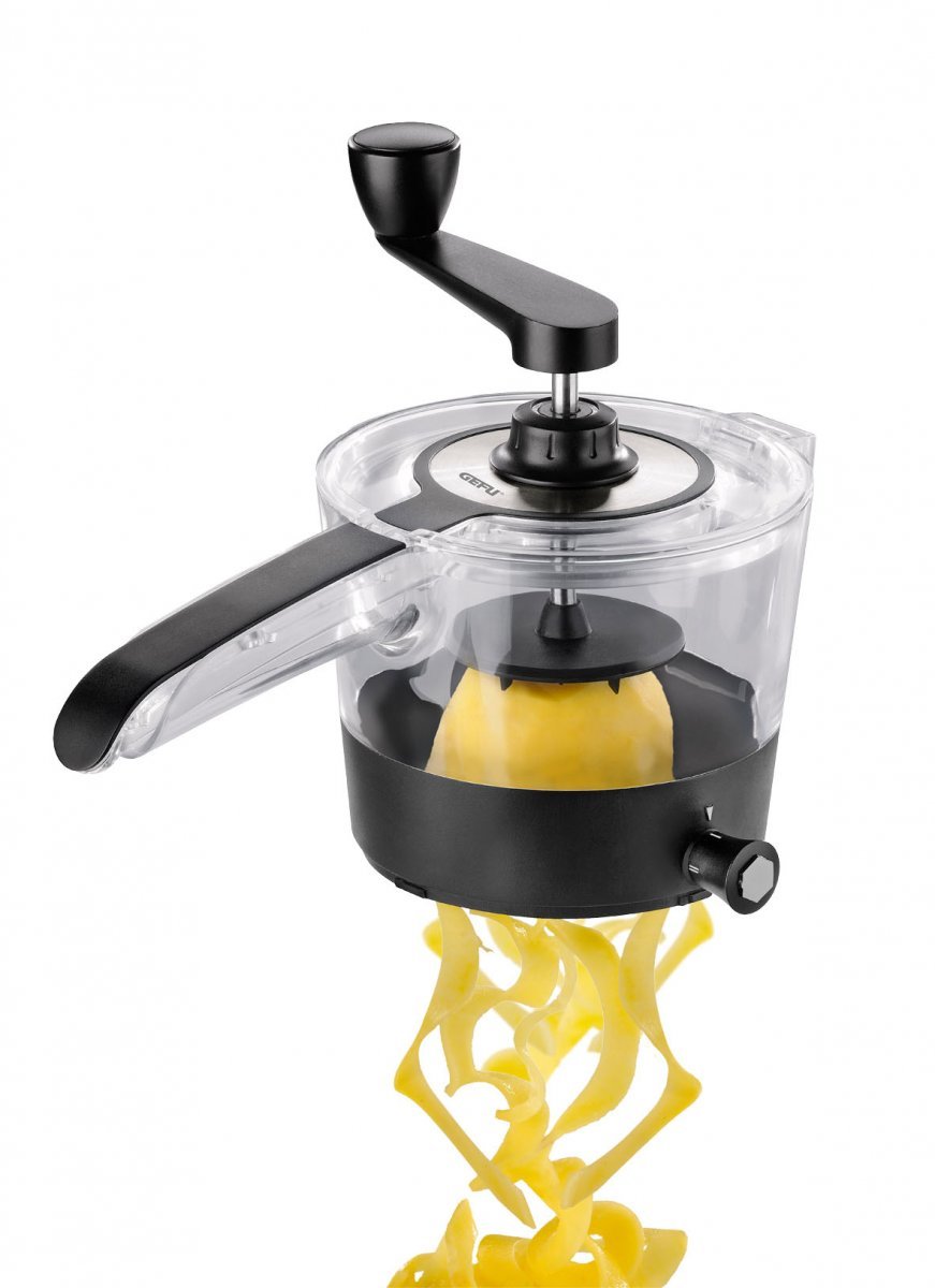 Gefun Spiralfix on jatkokehitetty suositusta Spirelli-vihannesleikkurista. Spiralxin avulla suikaloit pyöreämpiä vihanneksia jotka ovat liian paksuja Spirelliin, esim. paprika, sipuli, ja peruna. Säiliön kannen ansiosta voi myös säilöä siinä valmiit suikaleet ruoanlaittoon asti, voit myös suikaloida vihannekset myös suoraan pataan. Mukana tulevat kaksi terää ovat valmistettu japanilaisesta veitsiteräksestä, muu osat BPA-vapaasta muovista.