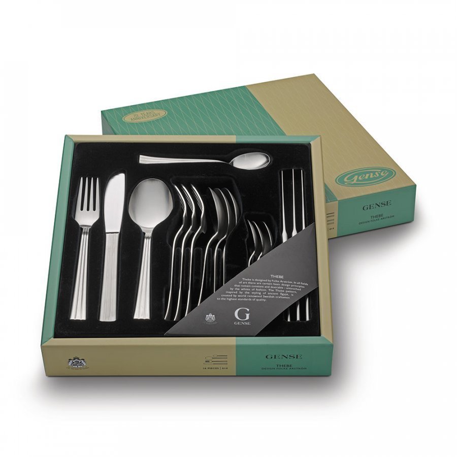 Folke Arnström on suunnitellut Thebe aterimet. Aterimissa on kaunis ja ajaton muotoilu ja niihin on saatu vaikutteita muinaisen Egyptin karuista ja pelkistetyistä linjoista.