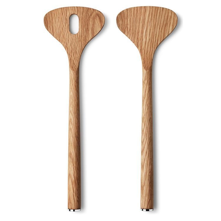Salaatinottimet Georg Jenseniltä, suunnittelu Alfredo Häberli. Ottimet on valmistettu kauniin vaaleasta tammipuusta. Elegantti laatta ruostumatonta terästä.