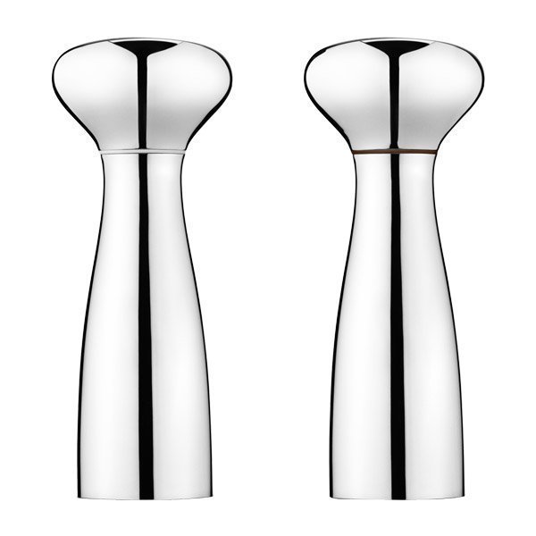 Georg Jensenin Alfredo-sarjan sulavalinjaiset suola- ja pippurimylly on valmistettu ruostumattomasta teräksestä. Alfredo Häberlin suunnittelemista myllyistä löytyy kestävä ja korkealaatuinen AllGrind Ceramic Technology -koneisto, joka tekee niistä jauhajien aatelia. Jauheen kokoa on helppo säätää myllyn pohjassa sijaitsevan ruuvin ansiosta. Alfredo-myllyt tuovat pöydän kattaukseen ajatonta tyyliä.