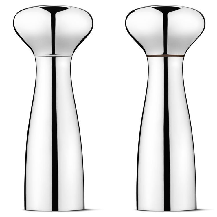 Alfredo suola- ja pippurimylly Georg Jenseniltä, suunnittelu Alfredo Häberli. Myllyt on valmistettu ruostumattomasta teräksestä ja ne on varustettu erityisellä mekanismilla (”ceramic technology”) – joka takaa, että tuote on laadukas ja pitkäikäinen.
