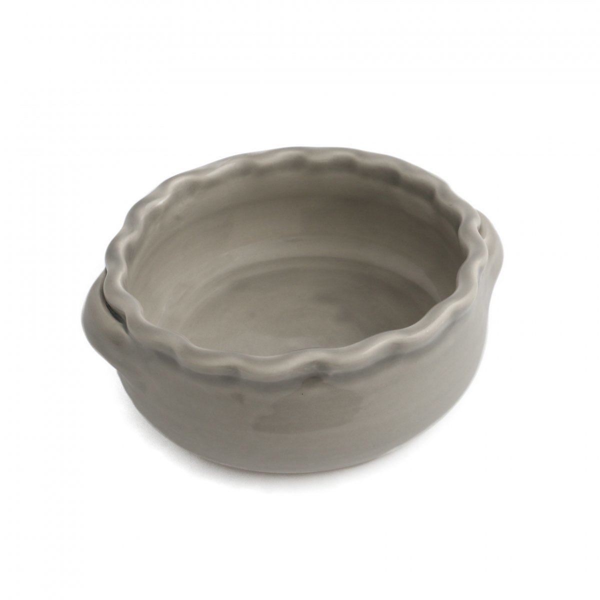 Kaunis betoninharmaa gratiinivuoka aallotetulla reunalla sopii niin uunissa valmistettavien annosten kuin piiraiden valmistukseen ja tarjoiluun. Vuoka on koristeellinen ja käytännöllinen lisä keittiöön ja tehty käsin terrakotta savesta, lyijy ja myrkkyvapaalla lasitteella. Tämän vuoksi vuoka on herkkä kosketuksissa kosteuden kanssa. Anna vuoan kuivua kunnolla pesun jälkeen.