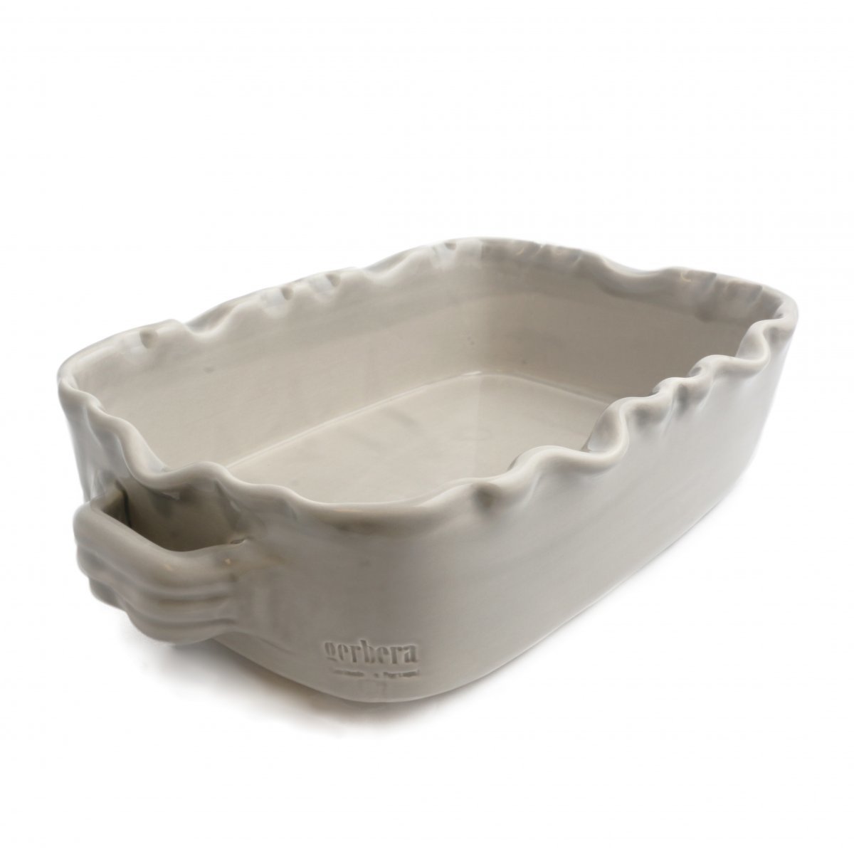 Betoninharmaa gratiinivuoka on kaunis ja käytännöllinen. Vuoka sopii niin gratiinien kuin muidenkin uuniruokien valmistamiseen sekä tarjoiluun ja kestää yli 250 asteen lämmön uunissa, sekä pakastuksen. Reunus on aallotettu ja kahvojen ansiosta vuokaa on helppo nostella. Vuoka on tehty käsin terrakotta savesta, lyijy ja myrkkyvapaalla lasitteella. Tämän vuoksi vuoka on herkkä kosketuksissa kosteuden kanssa. Anna vuoan kuivua kunnolla pesun jälkeen.