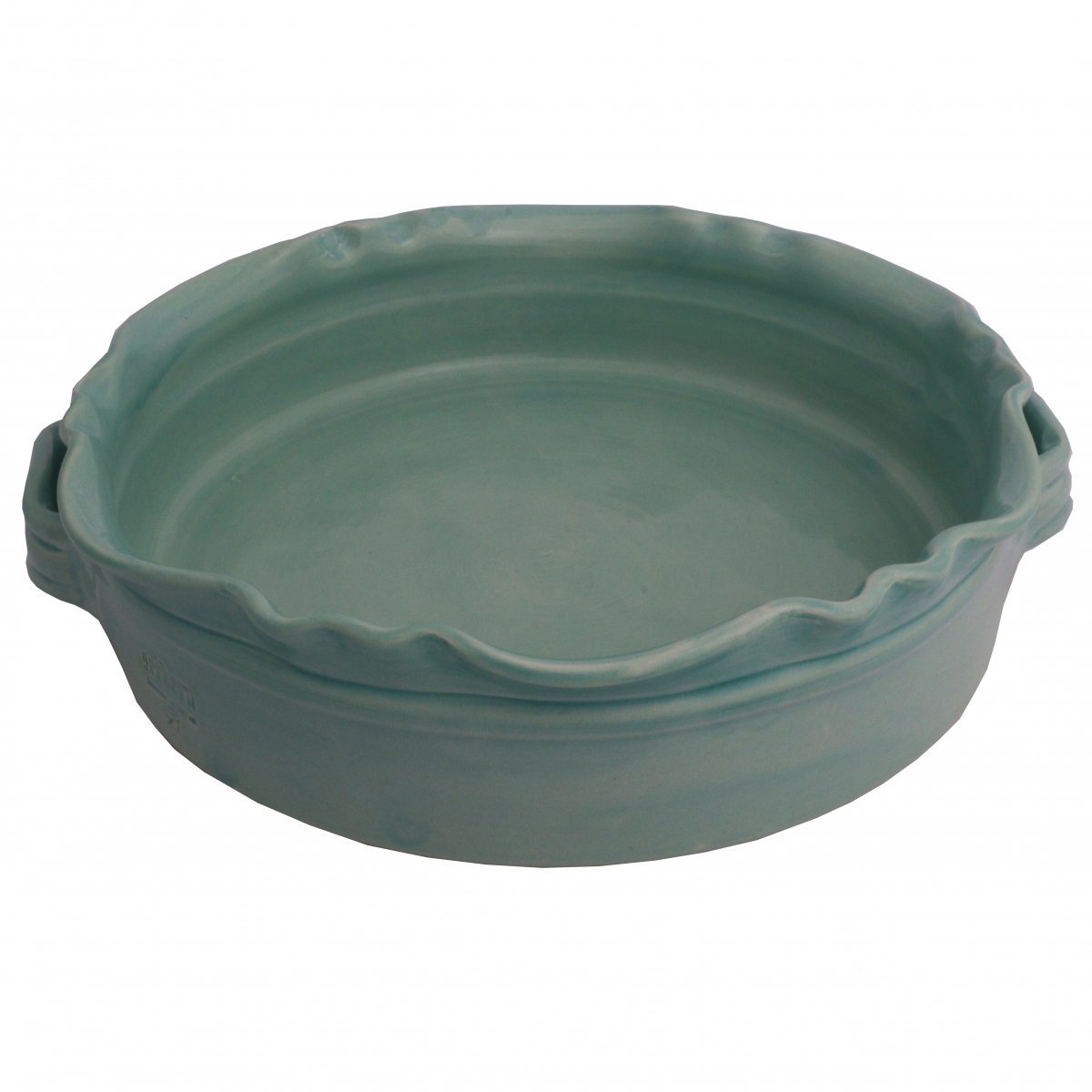 Turkoosi pyöreä gratiinivuoka aallotetulla reunalla sopii mainiosti gratiinien ja uuniruokien valmistamiseen ja tarjoiluun. Kätevän kahvan avulla vuoka on helppo nosteltava ja sopii niin arkeen kuin juhlaan. Gratiinivuoka on tehty käsin korkealaatuisesta terrakotta savesta, lyijy- ja myrkkyvapaalla lasitteella jonka johdosta vuoka on herkkä suoralle kosketukselle kosteuden kanssa. Anna vuoan kuivua kunnolla pesun jälkeen.