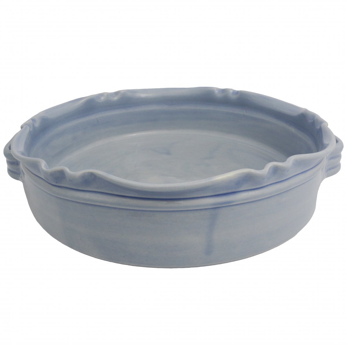 Taivaansininen pyöreä gratiinivuoka aallotetulla reunalla sopii mainiosti gratiinien ja uuniruokien valmistamiseen ja tarjoiluun. Kätevän kahvan avulla vuoka on helppo nosteltava ja sopii niin arkeen kuin juhlaan. Gratiinivuoka on tehty käsin korkealaatuisesta terrakotta savesta, lyijy- ja myrkkyvapaalla lasitteella jonka johdosta vuoka on herkkä suoralle kosketukselle kosteuden kanssa. Anna vuoan kuivua kunnolla pesun jälkeen.