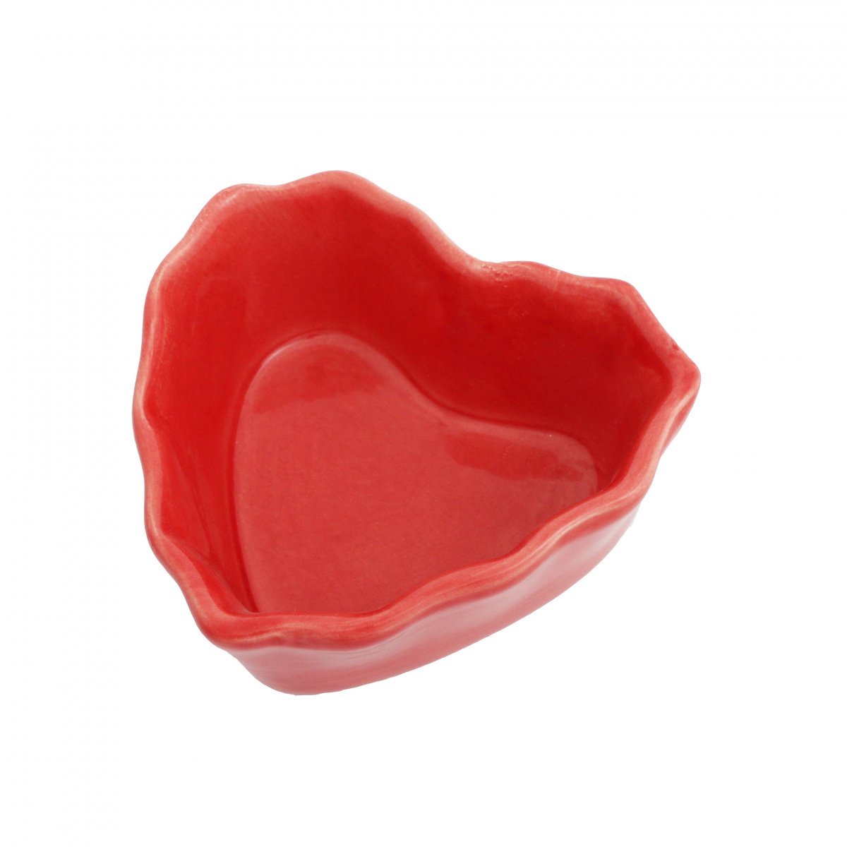 Kaunis tomaatinpunainen sydänvuoka aallotetulla reunalla sopii niin uunissa valmistettavien annosten kuin pähkinöiden ja karkkien tarjoiluun. Vuoka on koristeellinen ja käytännöllinen lisä keittiöön ja tehty käsin terrakotta savesta, lyijy ja myrkkyvapaalla lasitteella. Tämän vuoksi vuoka on herkkä kosketuksissa kosteuden kanssa. Anna vuoan kuivua kunnolla pesun jälkeen.