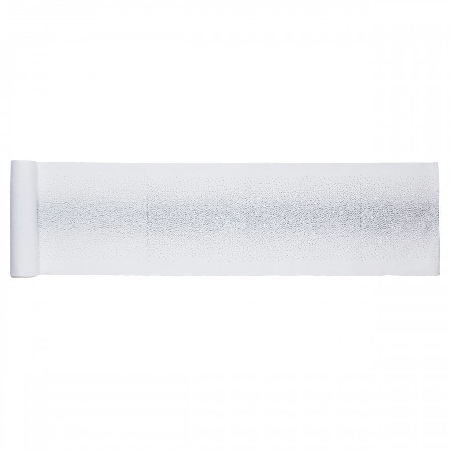 Valkoinen kapearibbinen kaitaliina, jossa on kimalleroiskeita. Suojaava ja koristeellinen. Pestään pesupussissa, 40 asteessa.