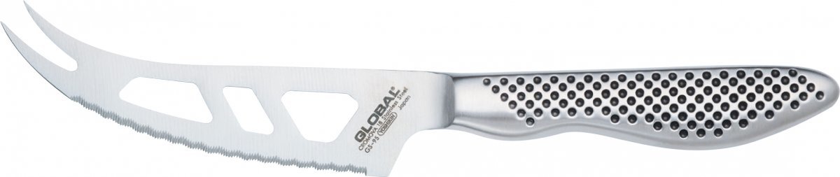 GLOBALin veitset ovat korkealaatuisia ja sopivat niin koti- kuin ammattikokillekin. Juustoveitsi 10,5 cm rei’itetyllä ja hammastetulla terällä on muotoiltu niin, ettei juustot tartu veitsen terään. Veitsi on valmistettu ruostumattomasta teräksestä nimeltään Cromova 18 ja tämä terästyyppi on erittäin helppo pitää puhtaana.