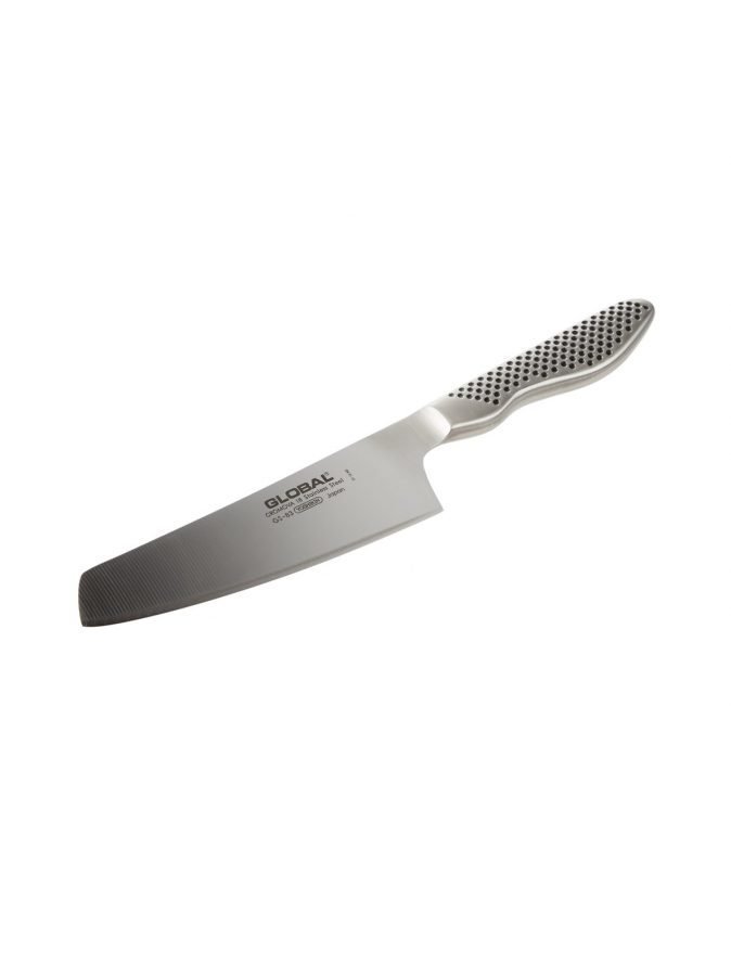 Tyylikkäät ja laadukkaat Global-veitset valmistetaan Japanissa. Global-veitsissä on pieni, noin 10 asteen teroituskulma, jolloin terästä irti parhaan herkkyyden, terävyyden ja pitävyyden. Vihannesveitsen pituus on 18 cm ja materiaali ruostumatonta ja kovaa Cromova-terästä. Käsinpesu.