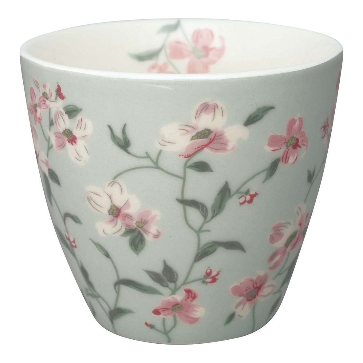 Greengaten lattemukissa on kesäinen kukkakuvio. Se sopii täydellisesti aamukahvin nauttimiseen.
