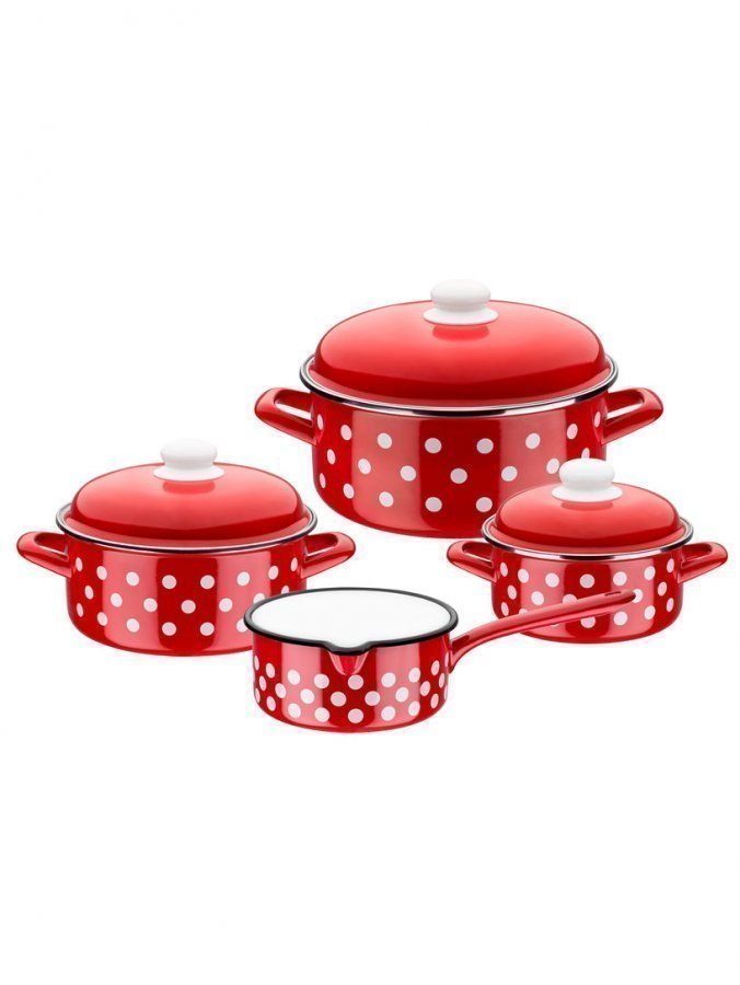 Erinomainen kattilasetti ensimmäiseen omaan keittiöön. Setissä on yhteensä seitsemän osaa. Kattiloiden keitto-ominaisuudet ovat erinomaiset ja niiden kestävä teräsemalipinta on helppo puhdistaa, eikä siihen jää helposti naarmuja. Kattilat eivät sisällä nikkeliä. Settiin kuuluu seuraavat osat: 1 lasikannellinen kattila (Ø n. 16 cm, tilavuus 1,4 l), 1 lasikannellinen kattila (Ø n. 20 cm, tilavuus 2,8 l), 1 lasikannellinen kattila (Ø n. 24 cm, tilavuus 4,7 l), 1 kaatonokallinen kasari (Ø n. 16 cm, tilavuus 1,4 l). Kattiloita ja kasaria voidaan käyttää kaikilla liesityypeillä, myös induktioliesillä.