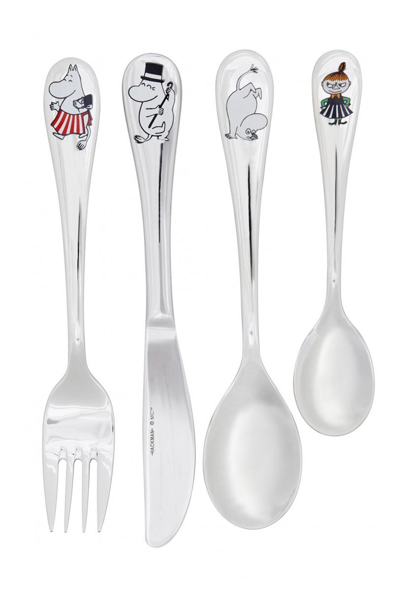 Tove Janssonin rakastetuista Muumi-tarinoista innoittuneena Hackman on luonut oman aterinsarjan. Sarjaan kuuluu ruostumattomasta teräksestä valmistetut lasten haarukka, veitsi, ruoka- ja teelusikka. Haarukkaa koristaa Muumimamma, veitseä Muumipappa, ruokalusikkaa Muumipeikko ja teelusikkaa Pikku Myy. Ruostumattomasta teräksestä valmistetut Muumituotteet ovat konepesun kestäviä.