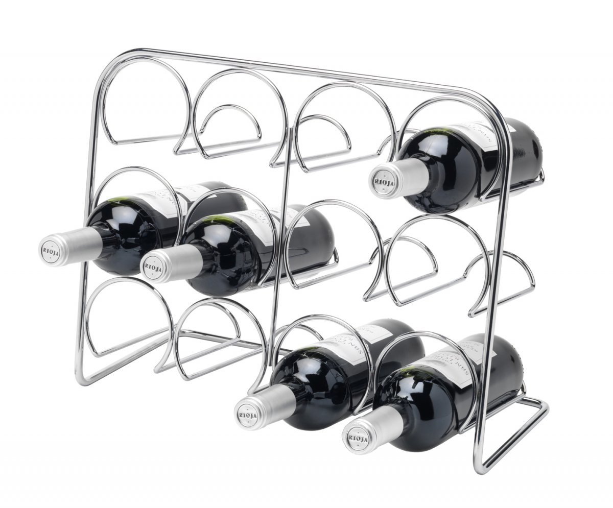 Tyylikäs kromista valmistettu viinipulloteline Hahnilta. Telineeseen mahtuu 12 viinipulloa.