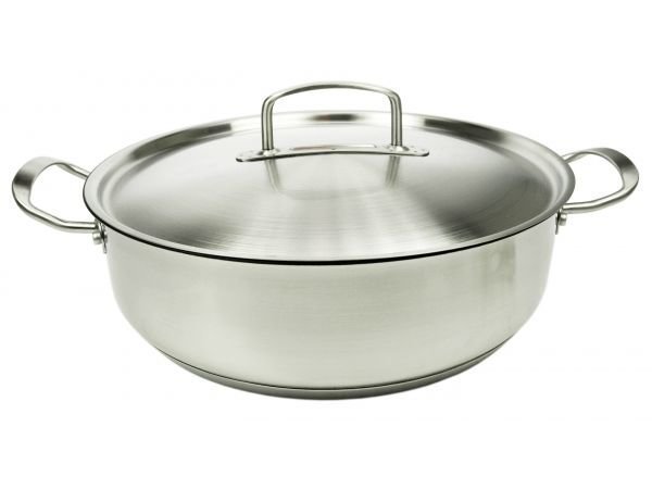 Kahdella kahvalla varustettu reilunkokoinen paistokasari.