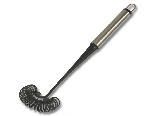 Teräksinen nylon-vatkain on erittäin kevyt käyttää eikä naarmuta pannujasi tai kattiloitasi.
